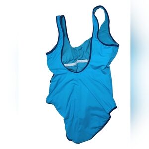 Disney Parks Scoopneck Minnie Mouse One Piece Sunglasses Swimsuit XL. Charming Disney swimsuit with Minnie Mouse design. Features a vibrant blue background and a cheerful yellow bow. Perfect for playful days. In excellent pre-loved condition.