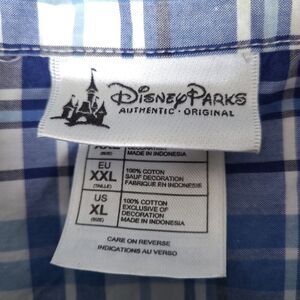 Disney Parks Shirt Mens XL Blue Plaid Embroidered Mickey Mouse Button Up
