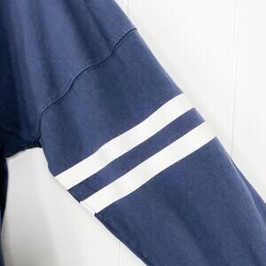 Disney Parks Spirit Jersey Puff Print Varsity Stripe Sleeve Size Medium Blue Whi