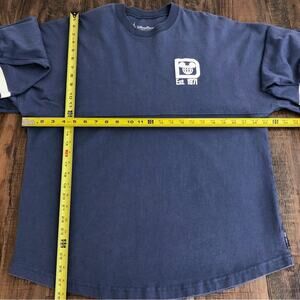 Disney Parks Spirit Jersey Puff Print Varsity Stripe Sleeve Size Medium Blue Whi