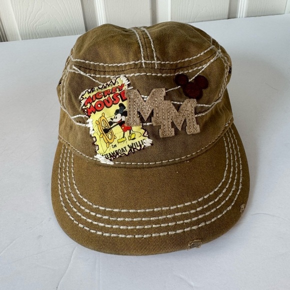 Disney Parks Steam Boat Willie Mickey Mouse Military Style Hat Adjustable Back