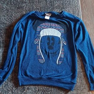 Disney Parks Sweater Women's Medium Blue Mickey Mouse Hat Logo Knit Winter