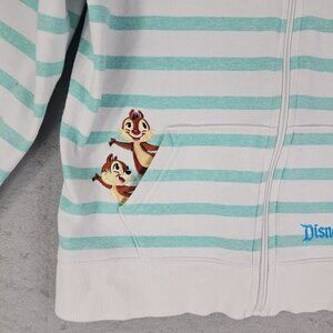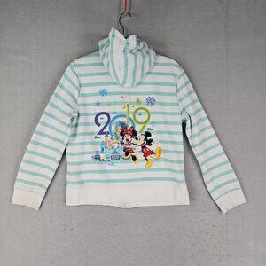 Disney Parks Sweatshirt Girls L Aqua Striped Full Zip Disneyland Minnie Mickey