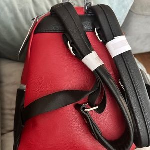 Exclusive item from the Walt Disney World theme parks and resorts. Simulated leather mini backpack Screen art armor with appliqué detailing Double zipper main compartment Exterior zip compartment Loungefly logo...