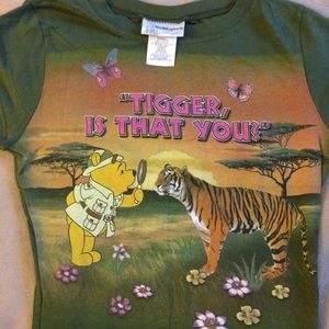 Worn just once this t-shirt is in like new condition. It has glitter on the graphic featuring Winnie the Pooh on safari for his friends. Bought in Animal Kingdom this design was a Disney Park exclusive. Runs slim, closer to XS than Small.
