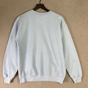 Keywords: Disney sweater, blue pullover, castle graphic, unisex adults, casual fall wear, machine washable, Disney parks, cotton blend, polyester knit, long sleeve sweater, pre-owned Disney merchandise.