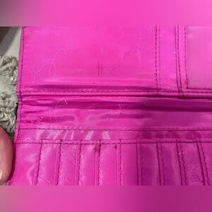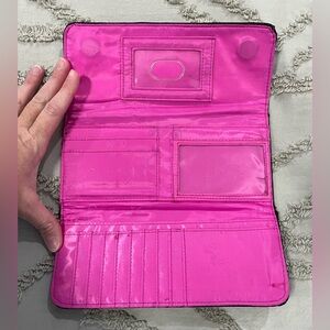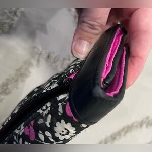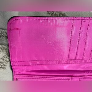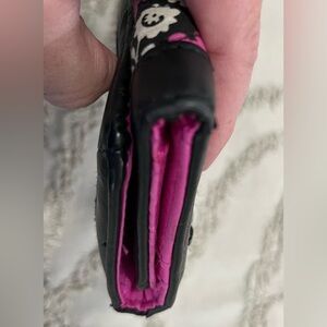Disney Parks Vera Bradley Mickey Mouse meets Birdie trifold wallet. Well used, leather edges show wear (see pics), some marks on inside of wallet (see pics).
