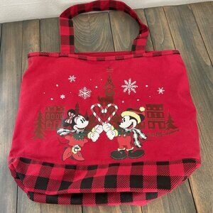 Disney Parks WDW Mickey Minnie Mouse Candy Cane Holiday Christmas Tote Bag (ST)