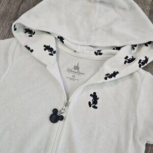 Disney Parks White Hooded Cover-Up Dress With Zipper Mickey Mouse Print Kids XS