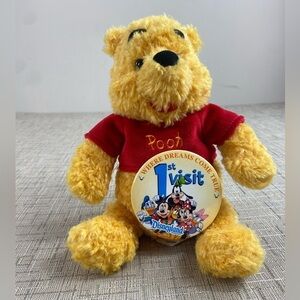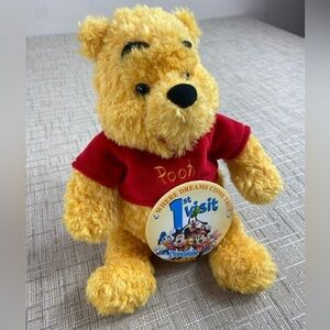 Disney Parks Winnie the Pooh Stuffed Animal w/1st Visit Disneyland Pin