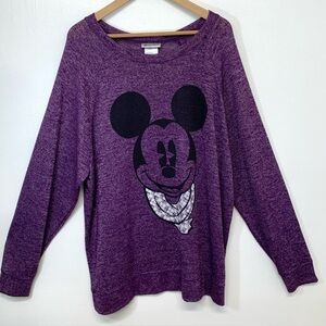 Disney Parks Womans Long Sleeve Top 1X Purple Micky Mouse Stretch Sweatshirt
