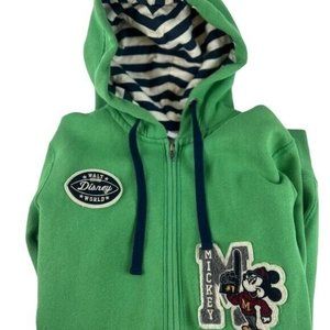 Disney Parks Womens Large Mickey Mouse Univ.iversity Full Zip Green Hoodie