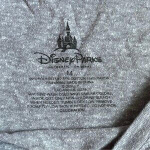 Purchased at Disney Land, this t-shirt features a nostalgic Mickey & Minnie Mouse graphic on a soft gray fabric. Crafted from a blend of polyester and cotton, it offers comfort and durability. Ideal for casual wear, this shirt combines classic Disney charm with modern style.