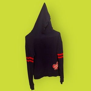 This hoodie is not the greatest of conditions. Its not too bad, but it does have some stains as you can see on the photo and some wear and the price is low because of this. It is still very adorable.