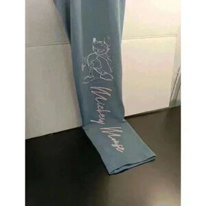 These Disney Parks Women's Mickey Mouse Leggings are perfect for any occasion, whether you're traveling, working out, or just running errands. The leggings feature a solid blue color with a Mickey Mouse drawing on the front and are made of a blend of polyester and spandex fabric. They have a high rise and a tapered hem for a comfortable and flattering fit. The elastic waistband and wide elastic waistband provide added comfort and the garment care is easy with machine washable instructions.
