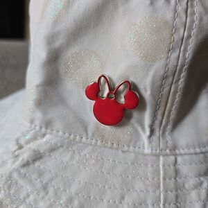 Disney Parks Womens Minnie Bucket Hat Rain Sun Visor red minnie Pin White Hat with Polka Dots