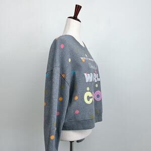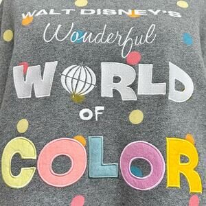 Large Disney Parks 100 Eras crewneck sweatshirt. Slightly cropped length. Embroidered letters and colorful polka dots. Soft and cozy fleece interior. No flaws, great condition!
