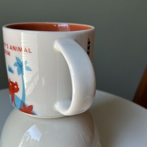 • The mug has a contrasting handle and interior glaze, and features both the Disney's Animal Kingdom logo and the Starbucks logo. o
