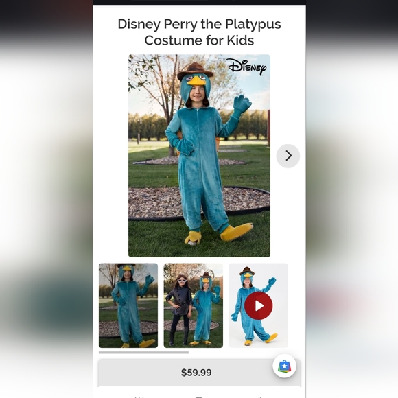 Fun Perry the Platypus costume. Features blue body and yellow feet. Perfect for imaginative play.