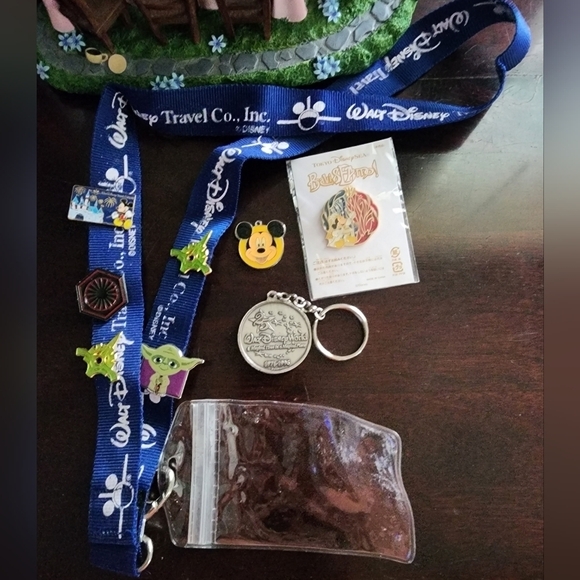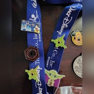 Used and new Disney pins on a lanyard. Please view all photos for condition.