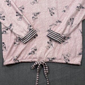 Disney Pink Mickey Mouse Print Long Sleeve Pullover Sweatshirt Hem Tie Womens L
