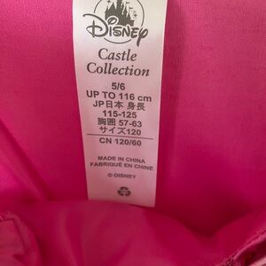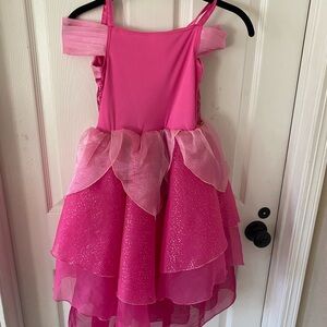 Charming Disney princess dress. Features layered pink fabric with glitter accents. Ideal for imaginative play.