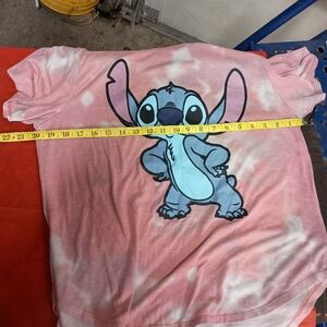 Embrace the playful charm of Disney with this pink short sleeve tee featuring a vibrant Stitch graphic. Crafted from soft fabric, this casual top offers a comfortable fit and a classic crew neckline, perfect for everyday wear.