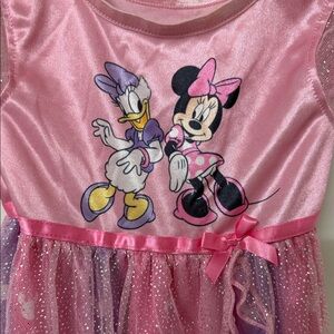 Adorable Disney nightgown featuring beloved characters. Pink satin top with glittery purple skirt. Perfect for bedtime fun.