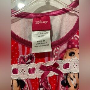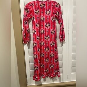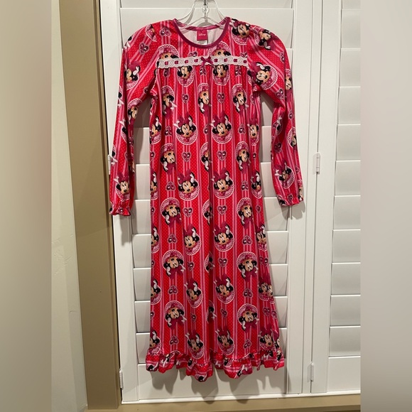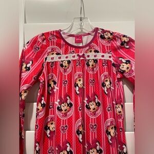 Charming nightgown with Minnie Mouse design. Features pink and white colors. Ideal for bedtime comfort.