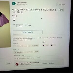 Disney Pixar Buzz Lightyear boys Kids T-Shirt - Purple and Black