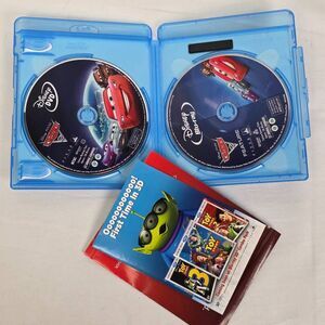 Disney Pixar Cars 2 Blu-ray + DVD combo pack. Family fun with Lightning McQueen and Mater in a high-speed global adventure. Case and discs included.