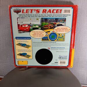 Up for sale is a RARE Disney Pixar Cars: Let's Race! Steering Wheel Play-a-Sound Book. This board book puts your little racer in the driver's seat with a built-in steering wheel and dashboard that plays engine revs, tire squeals, and other race day sounds as they read along with Lightning McQueen and Mater's adventure. This book is perfect for young children learning to read and for fans of the beloved Cars franchise. It is in good used shape with typical signs of use but still has lots of use left in it. NOTE: this will not come with batteries. Thanks for looking!