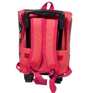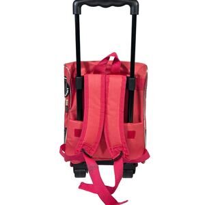 Introducing a Disney Pixar Cars Lightning McQueen Rolling Mini Backpack Luggage for kids. This rolling bag features a fun Lightning McQueen design and is perfect for little travelers or everyday use. Item is used and shows some minor stains as shown in the photos.