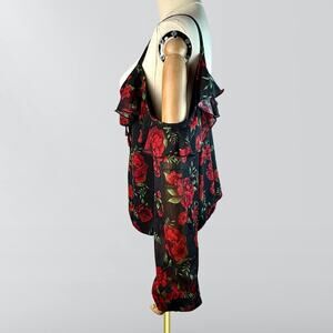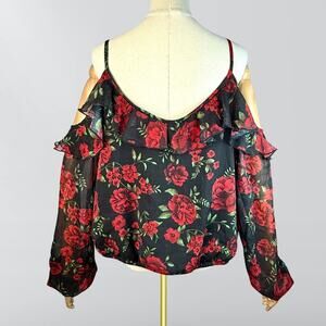 Disney Pixar Coco Black & Red Rose Print Floral Cold Shoulder Top