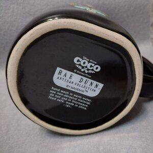 This ceramic mug from the Rae Dunn Artisan Collection, featuring Disney Pixar's Coco theme, holds 18 oz and is food-safe.