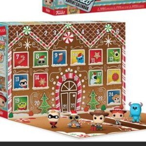 Brand new in the box, still plastic wrapped! 24 piece advent calendar. Vinyl Disney Pixar Funko Pocket Pop collection. Includes characters from Toy Story, Monster's Inc, The Incredibles and Wall-E