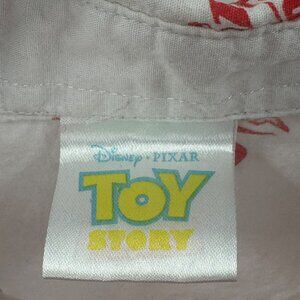 Disney Pixar Toy Story Pizza Planet Button-Up Shirt Mens L Red/White