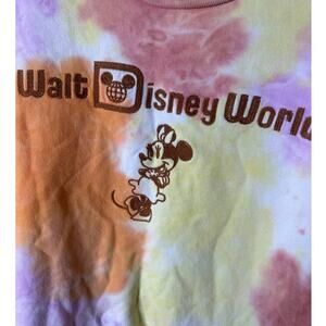 Pre-loved Disney Plus 3X Minnie Mouse Tie-Dye Embroidered Knit Cropped Sweatshirt Pullover.