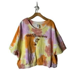 Disney Plus 3X Minnie Mouse Tie-Dye Embroidered Knit Cropped Sweatshirt Pullover