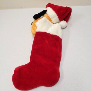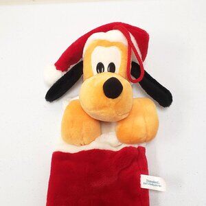 Disney Pluto Dog Christmas Holiday Stocking Disneyland Red White Santa Hat Plush.