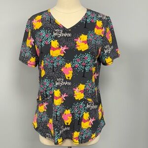 Disney Pooh Bear & Piglet Scrub Top Size M Dark Gray Scrubs Nurse Uniform Smock