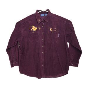 Disney Pooh Button-Up Shirt Women's XL Purple Embroiderd Corduroy Long Sleeves