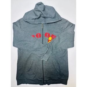 Disney Pooh Graphic Gray Knit Zip Up Sweater Women Size Large