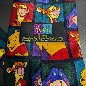 This colorful Disney Pooh tie showcases beloved characters like Winnie the Pooh and friends, adding a playful touch to any outfit.
