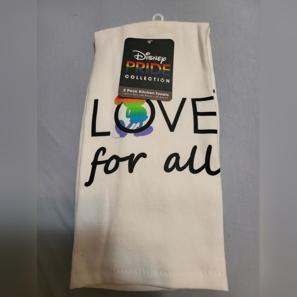 Celebrate love with these Disney Pride Collection kitchen towels. Features a vibrant rainbow design on a white background.