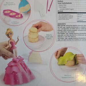 Inside, you'll find specialty pans designed to shape the perfect princess dresses, along with roller cutters for adding delightful details. The included cake stand will showcase your creations in style.