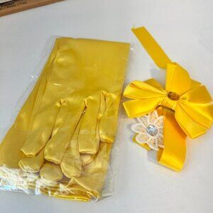4 piece set dress, hoop petticoat, gloves, hair piece