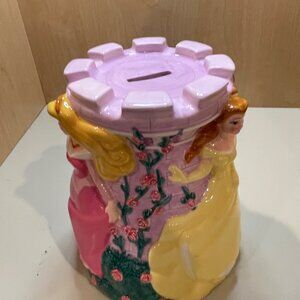 Disney Princess Ceramic Castle Coin Bank Featuring Belle Cinderella & Aurora Mul