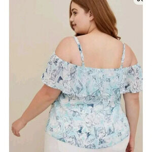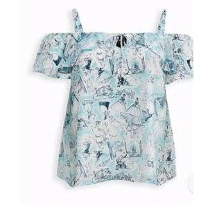 Disney Princess Cinderella Blue Flutter Cold Shoulder Top Plus Size 3 Women's