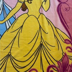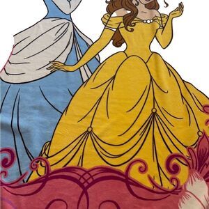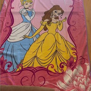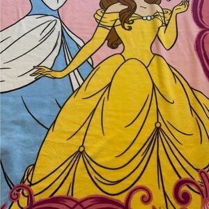 Disney Princess blanket featuring Cinderella and Belle. It is made of a soft, plush material and measures approximately 62”x90 Disney The blanket is pink with a floral pattern and features a large image of Cinderella and Belle in their iconic dresses. The blanket is in mint condition. The blanket is perfect for cuddling up on the couch or for adding a touch of Disney magic to any bedroom.